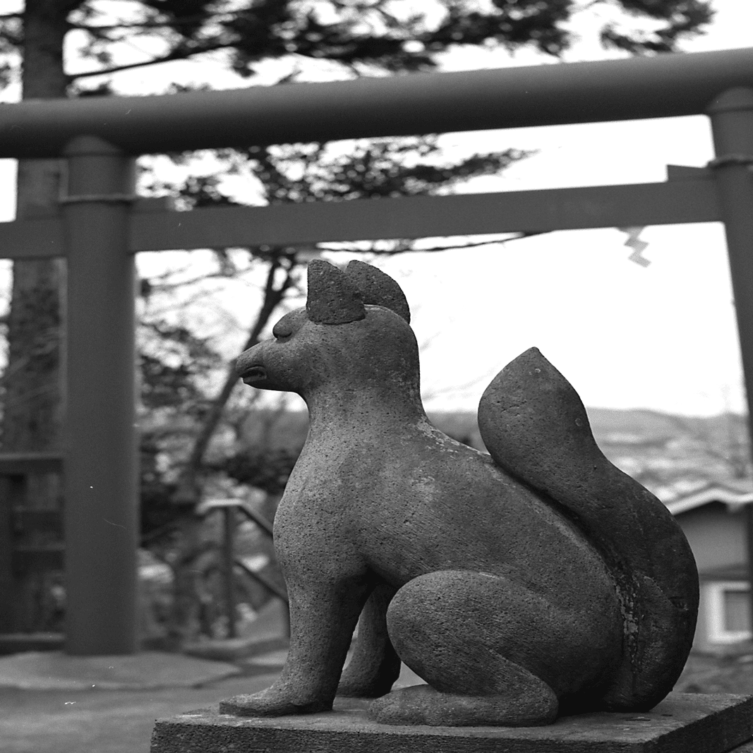 モデルになっていただいたキツネさんたちは、塩竈市の祓ヶ崎稲荷神社の皆さん。この神社は、かつて仙台藩主が鹽竈神社参拝前に穢れを祓った「祓所」の役割を担っていたという由緒ある神社です。